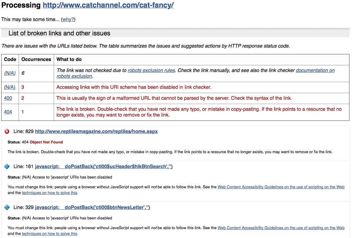 Action – Navigate to a link checking site and enter your website’s URL. You may have to wait a while, but the results are worth the wait. You’ll receive a comprehensive list of broken links that you can address one at a time.