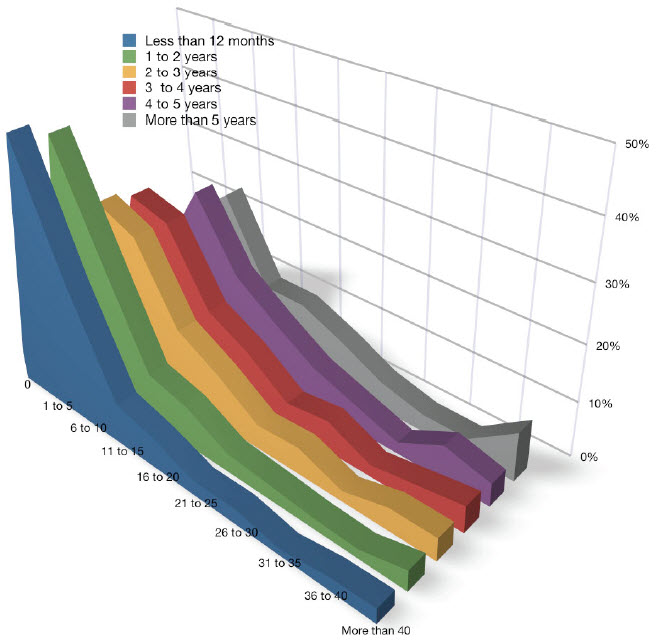 Half of the businesses just starting out with social media spent five or fewer hours per week on it. Yet almost 10% of the ones that have been using it for more than five years spend more than 40 hours per week on it.